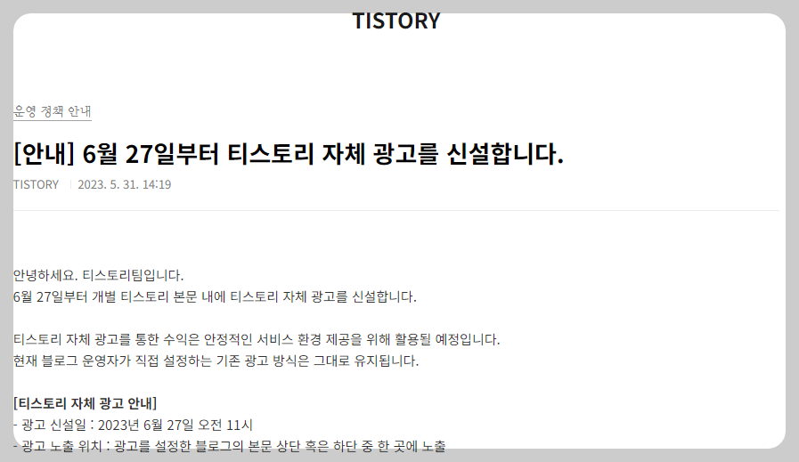 지난 5월 말 많은사람들이 갑작스럽게 통지받은 티스토리 자체 광고 신설 공지로 워드프레스나 구글 블로그로의 이주를 진행했습니다. 저 또한 2023년 3월에 티스토리에 블로그를 신설했지만, 정리작업을 거쳐 2023년 10월 ~ 2024년 4월까지 구글 블로그로의 이동을 했다가 몇몇 이유가 있어서 접고 티스토리로 복귀하게 되었습니다.