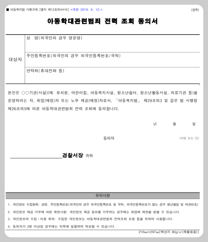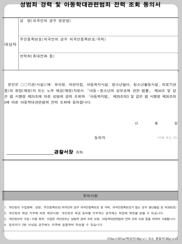 성범죄 경력 조회 동의서