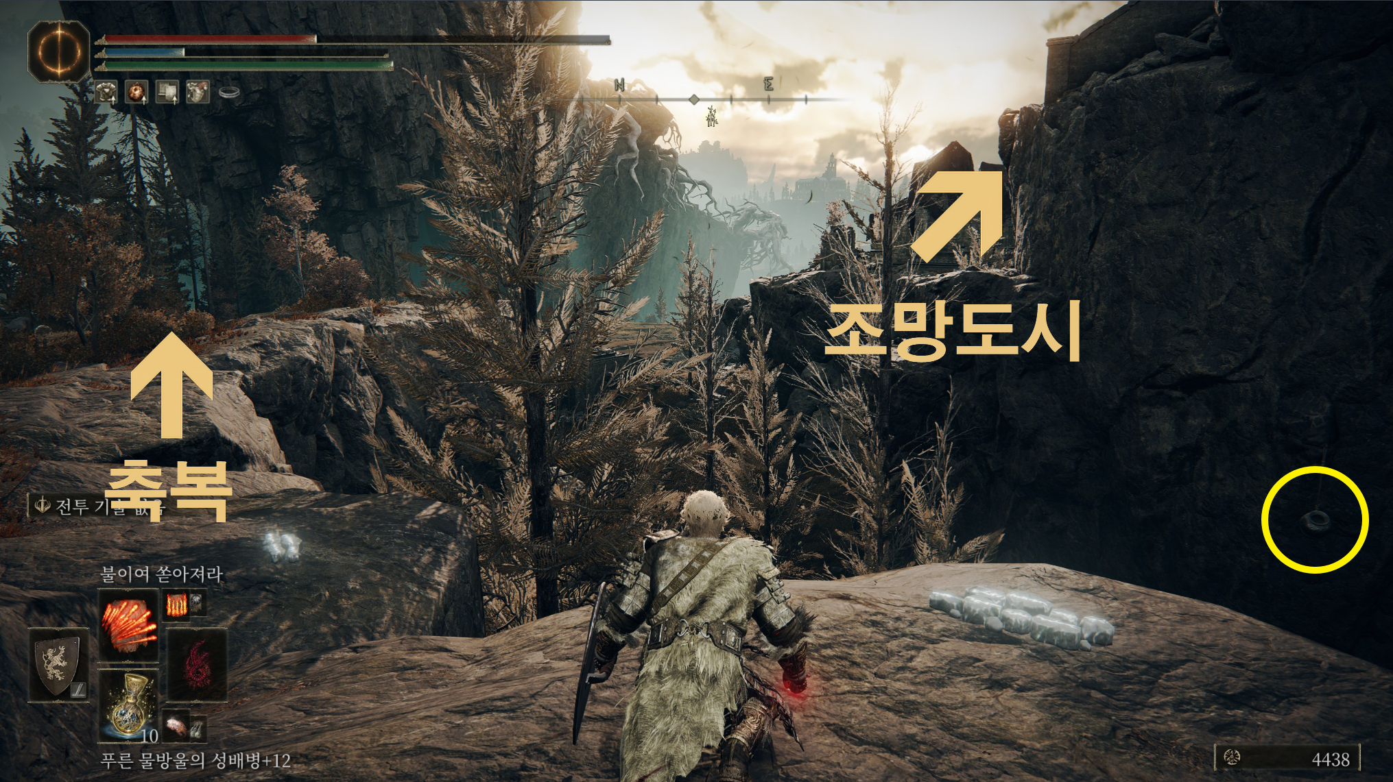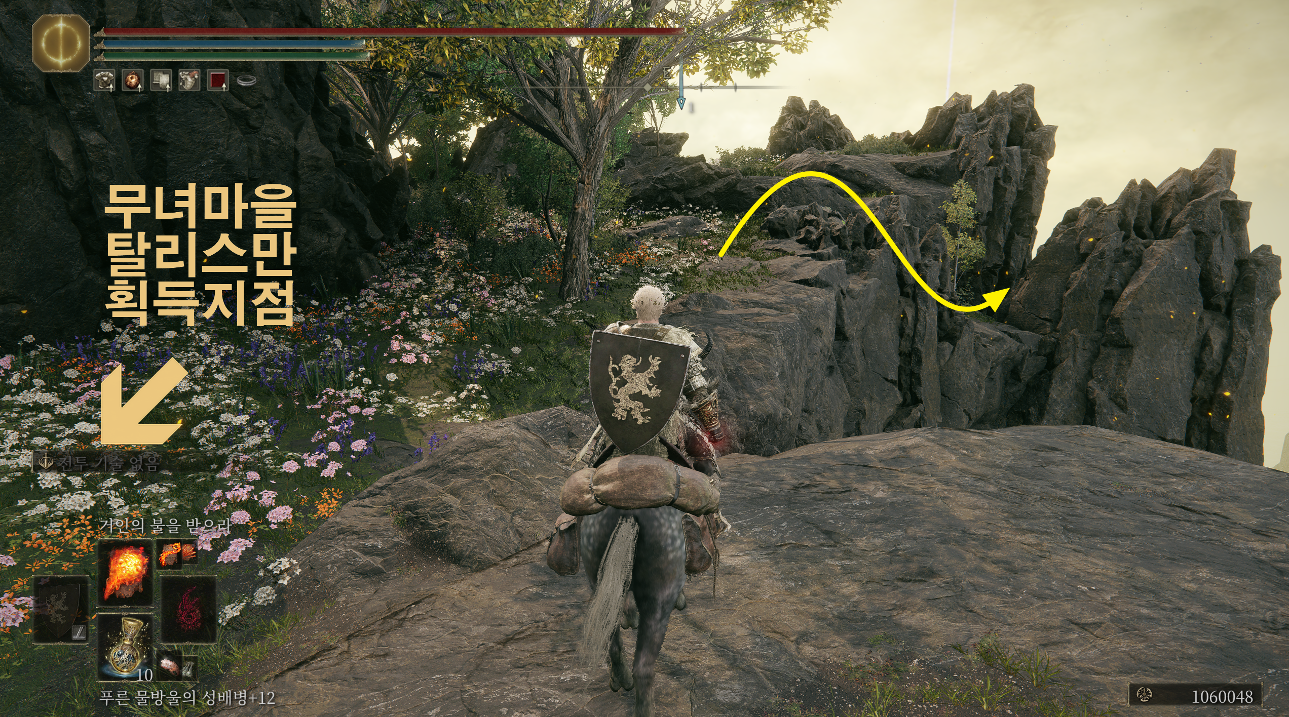 - 위치 : 절벽길 끝 축복에서 조망도시를 바라보았을 때, 우측에 있는 계곡의 절벽면 중 조망도시쪽면 상단에 있는 항아리를 부수고 획득(조망도시에 입장할 필요가 없음)
