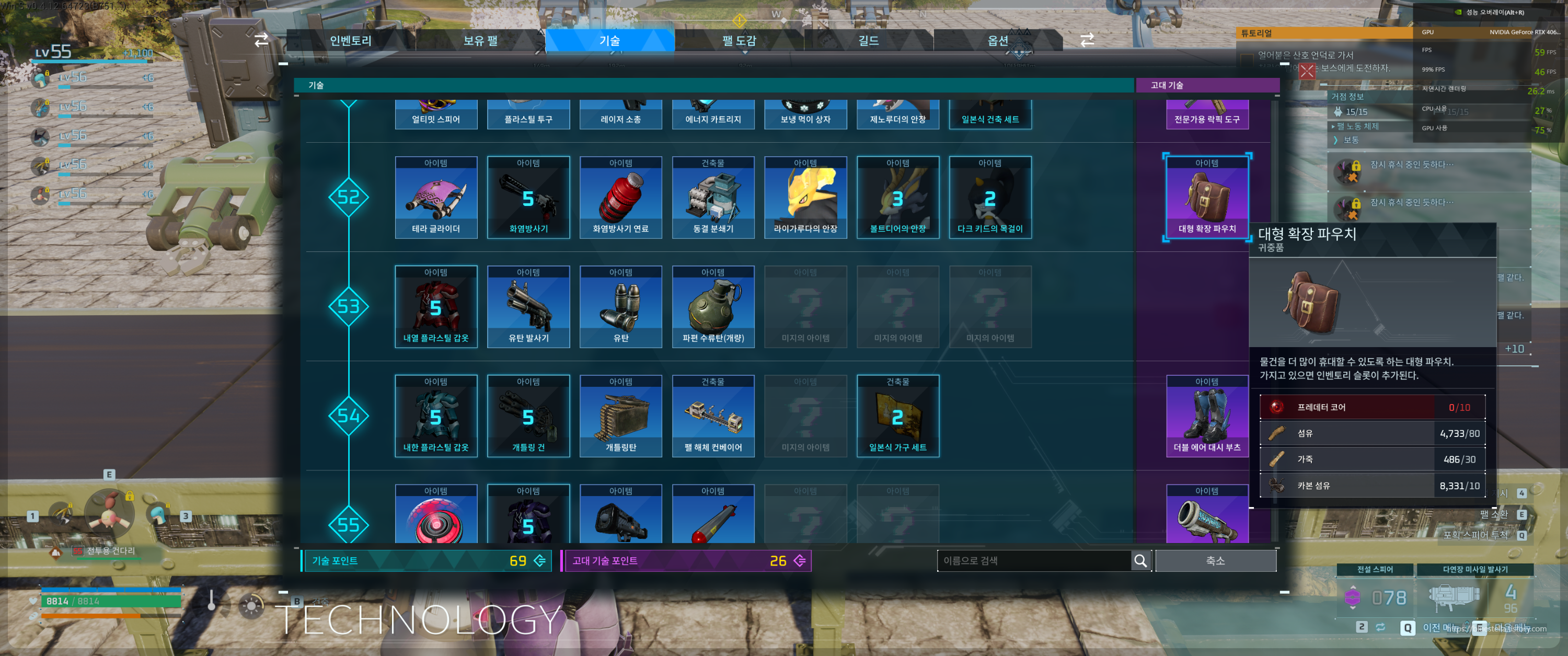 때문에, 업데이트 소식에서 인벤토리 확장에 대해 들으신 분들이라면, 기술창에서 파우치부터 먼저 보셨을거라 생각합니다.