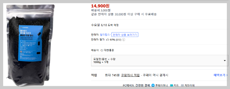 필터안에 굉장히 대~단한 무언가가 있는건 아니라서, 그냥 활성탄만 넉넉히 부어주면 특별히 문제는 없을 듯 합니다. (아래처럼 그냥 활성탄을 리필로 1kg정도 구입하면 1년동안 충분히 사용이 가능하기도 하구요.)