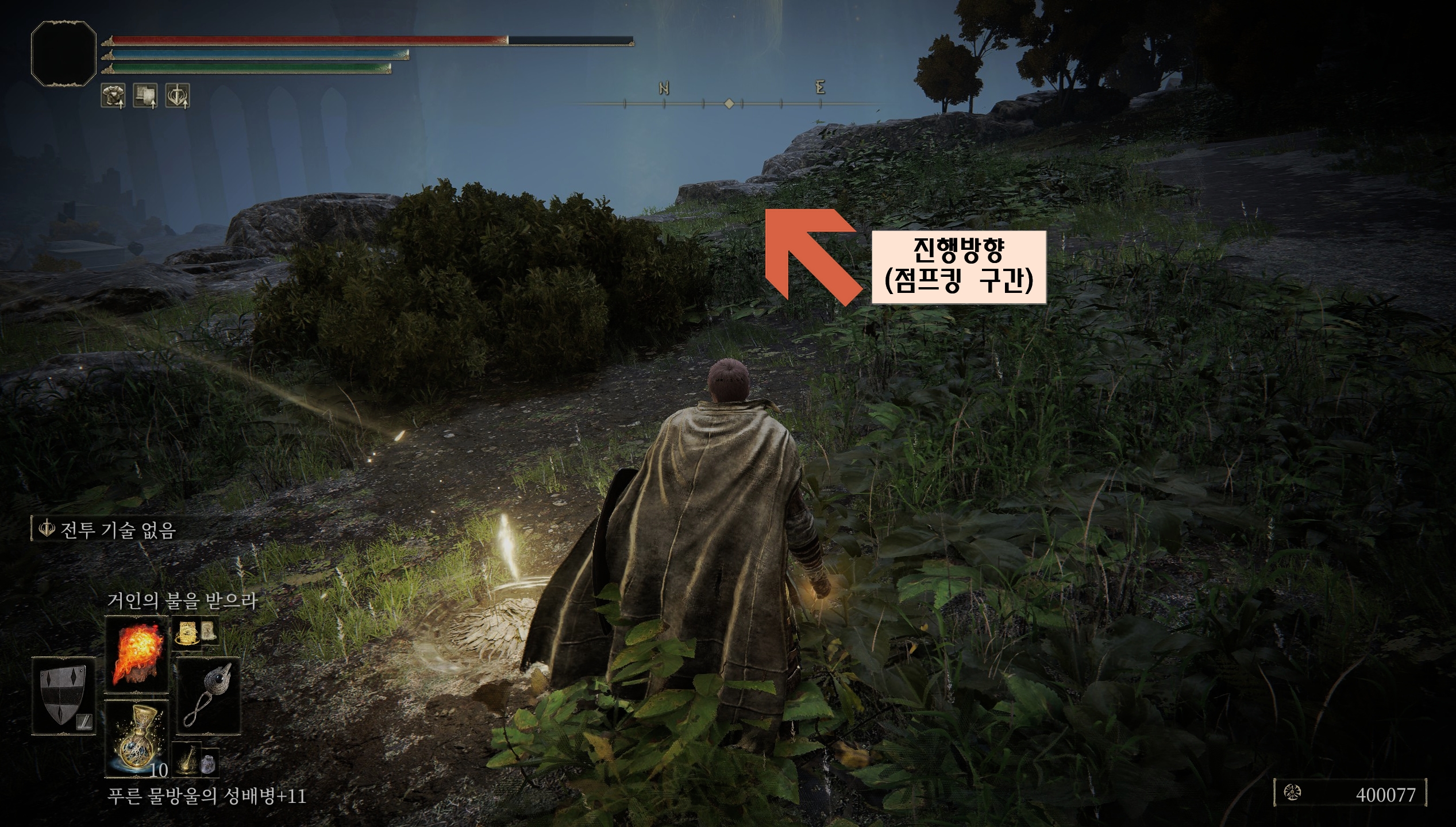 중간에 늑대들이 있으니 피격에 주의해주시고, 리에니에 첫 축복은 꼭 찍어주세요. 이후 진행단계에서 낙사의 우려가 있습니다.